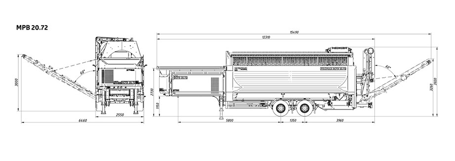 In-feed hopper dimensions (length/width) [mm] 3900/2230